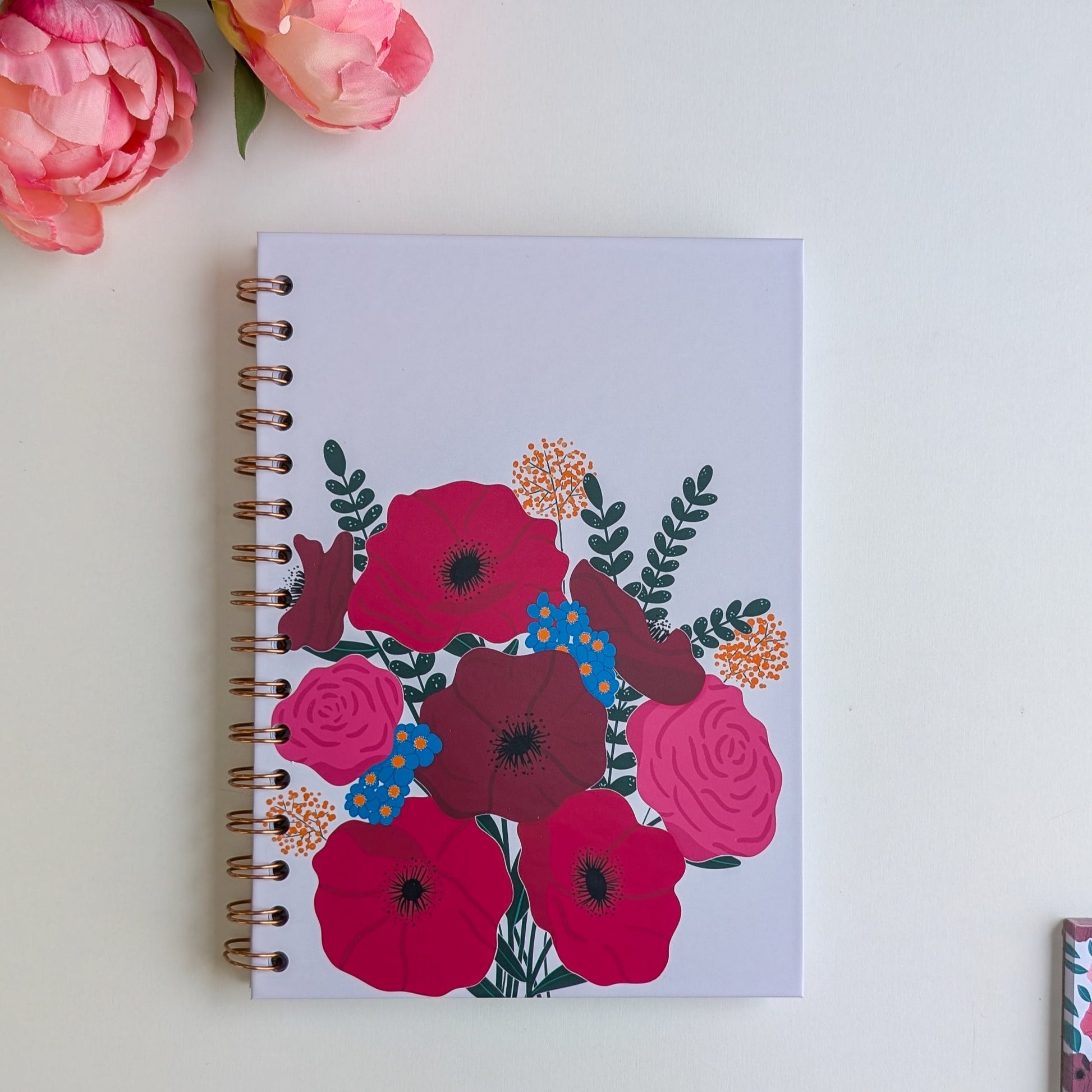 Carnet A5 - Reliure à spirale - Anémones & Roses