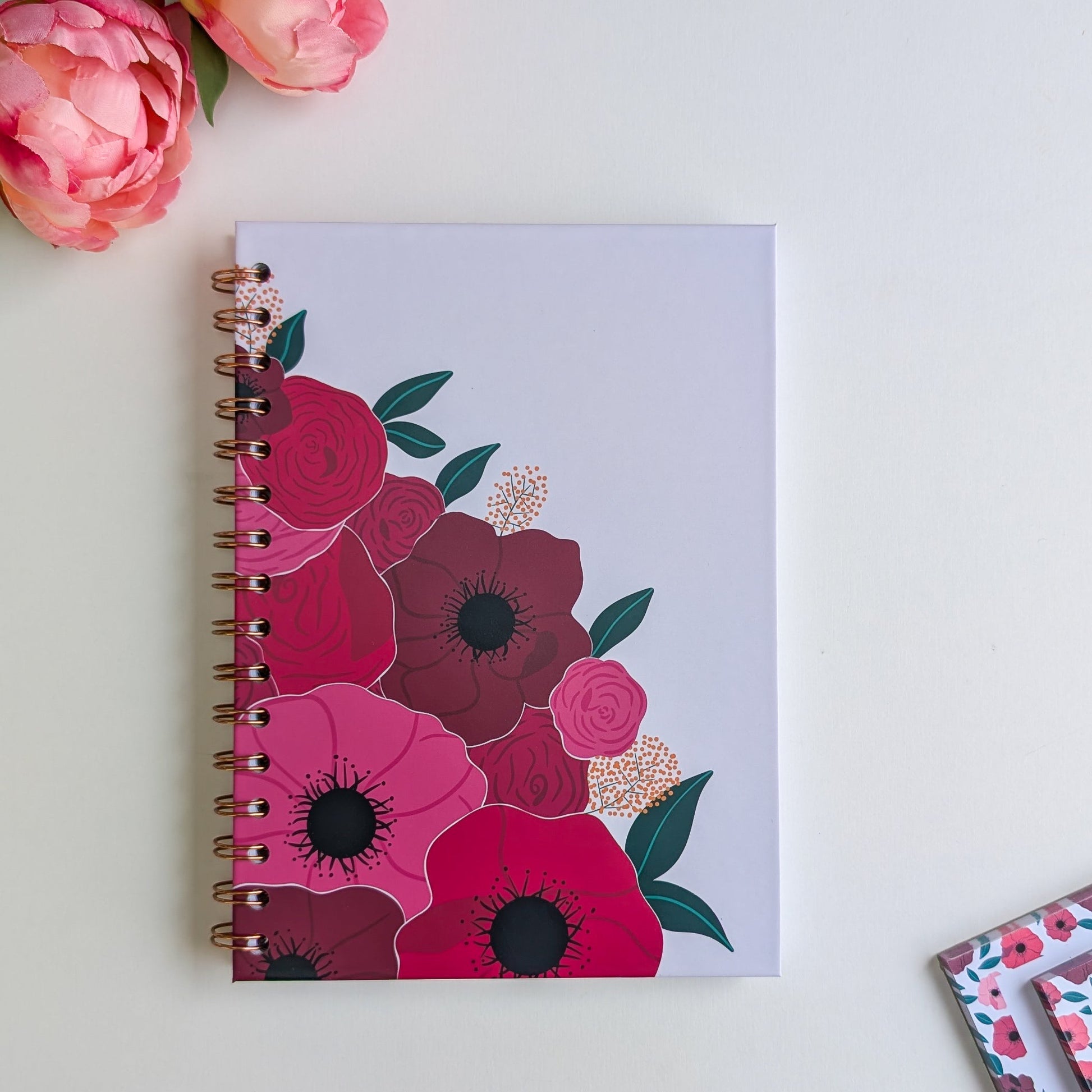 Carnet A5 - Reliure à Spirale - Gros bouquet d'Anémones et de Roses