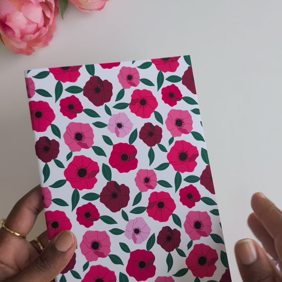 Carnet A5 - Reliure agrafée - Anémones roses et rouges