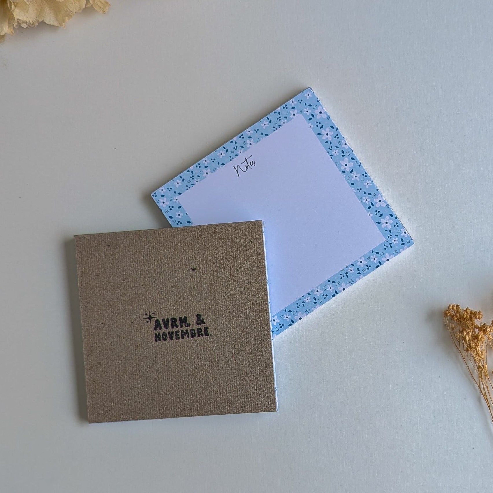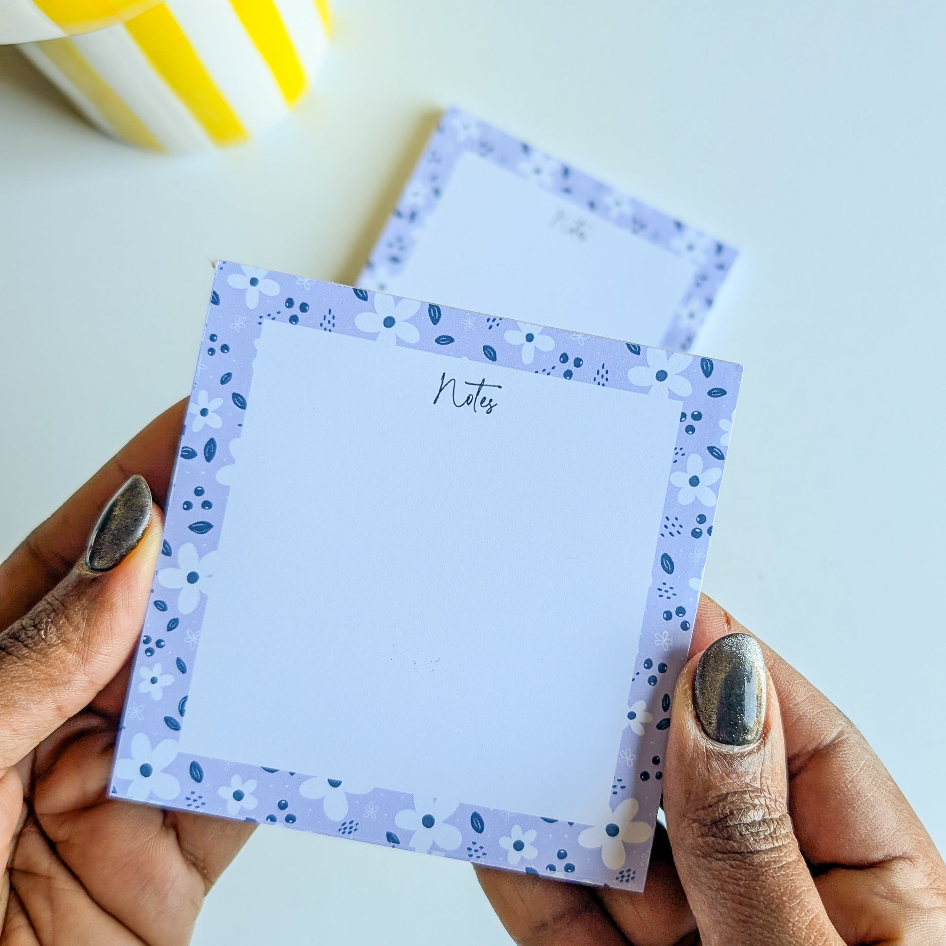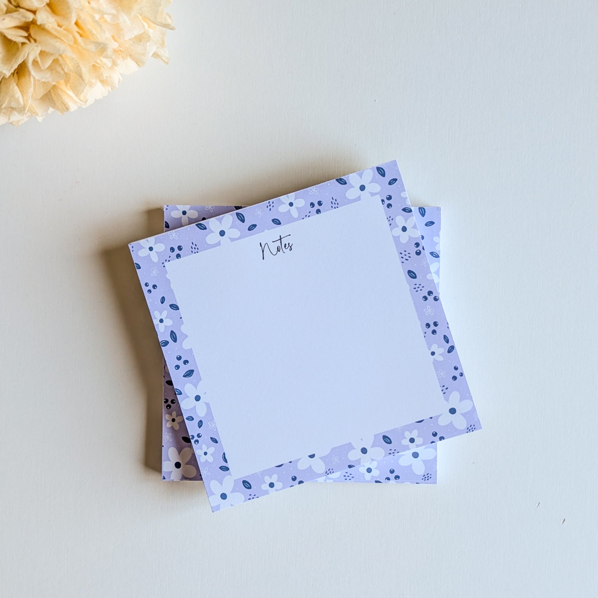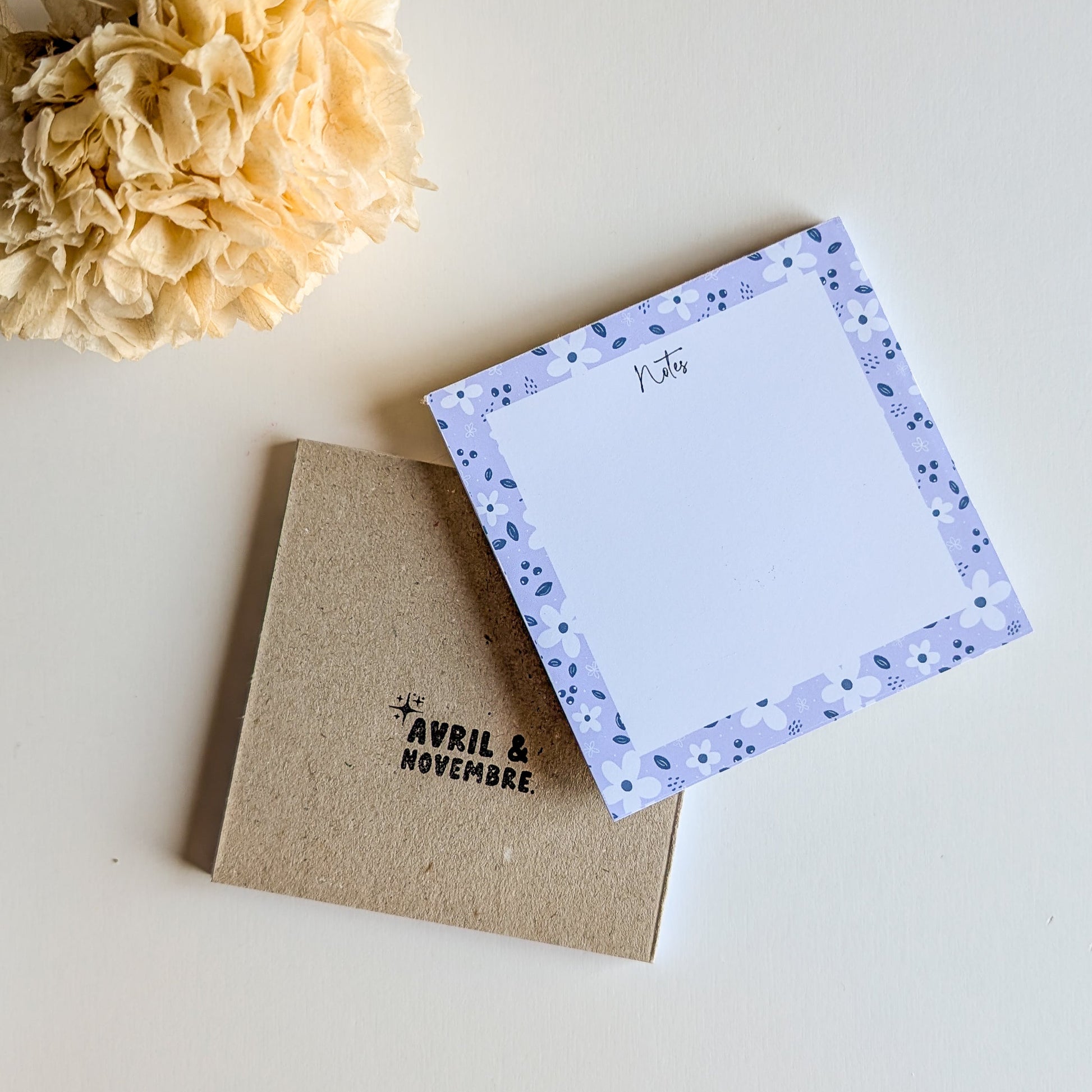 Lot de 2 Bloc-Notes carrés - Petites fleurs blanches - Fond bleu, rose ou violet