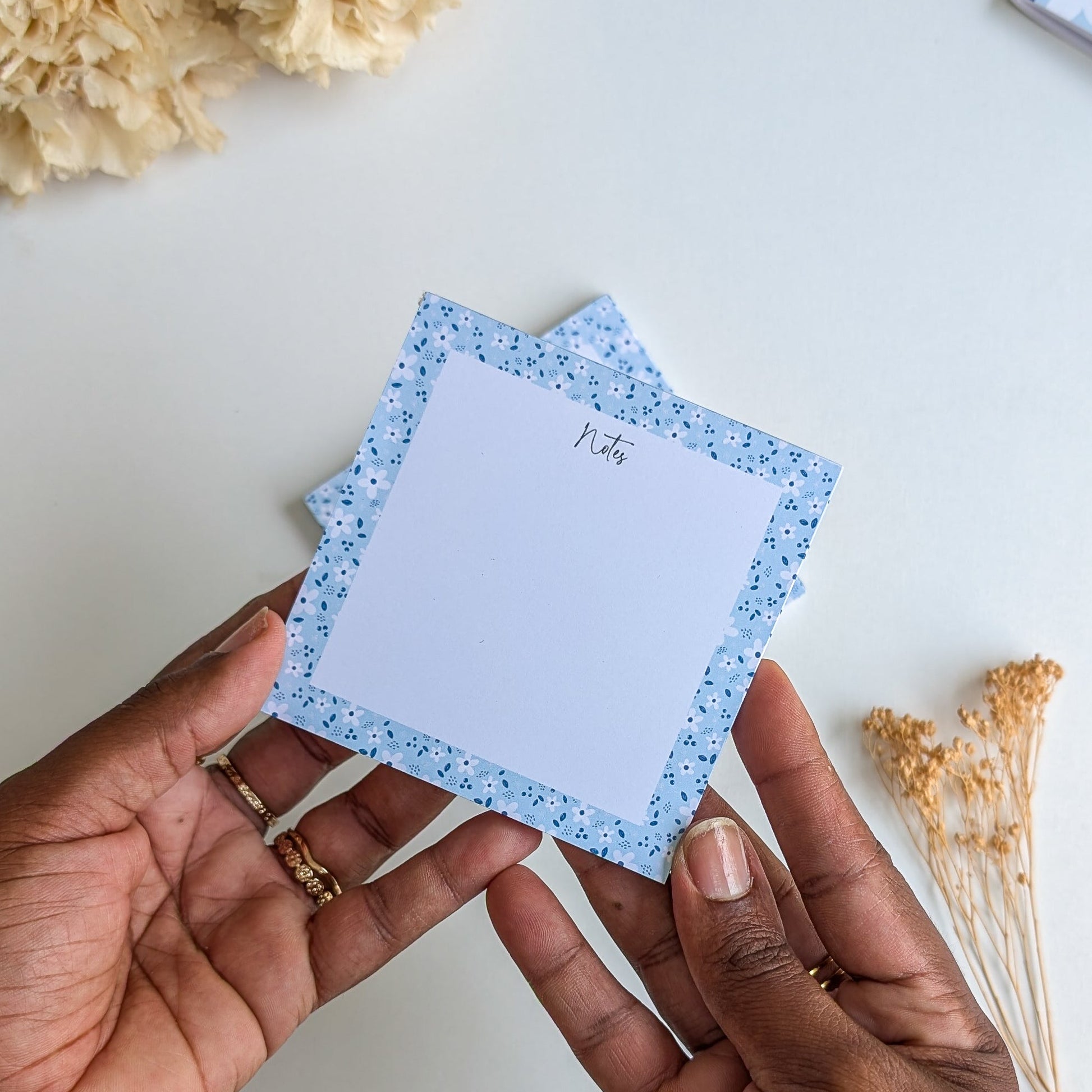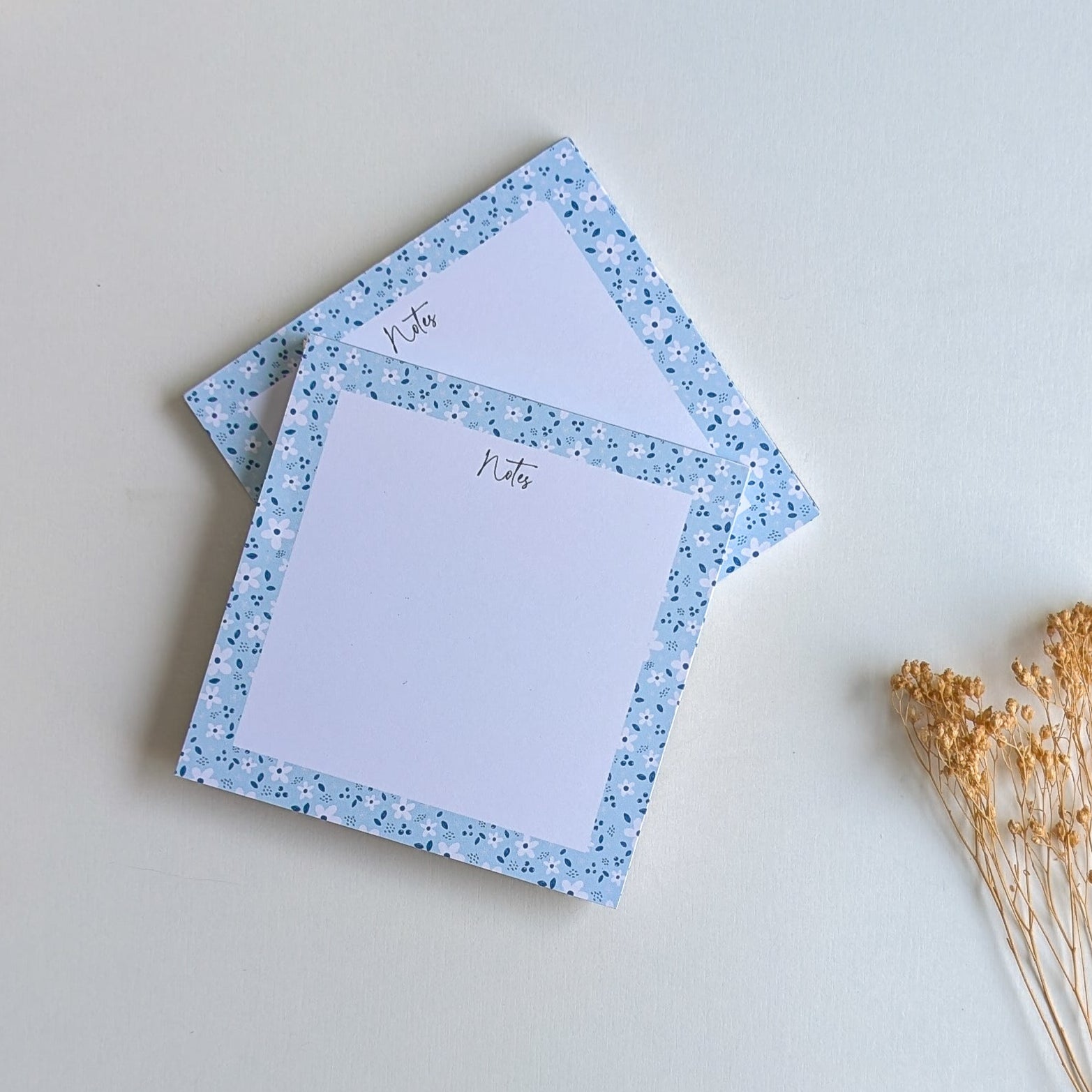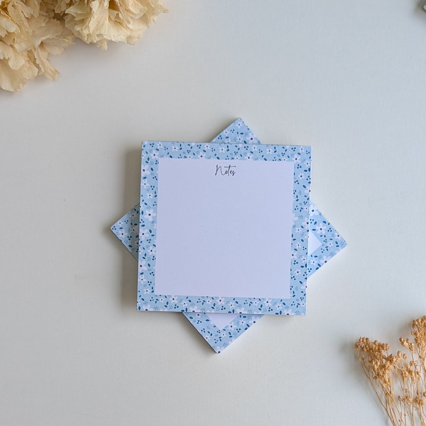 Lot de 2 Bloc-Notes carrés - Petites fleurs blanches - Fond bleu, rose ou violet