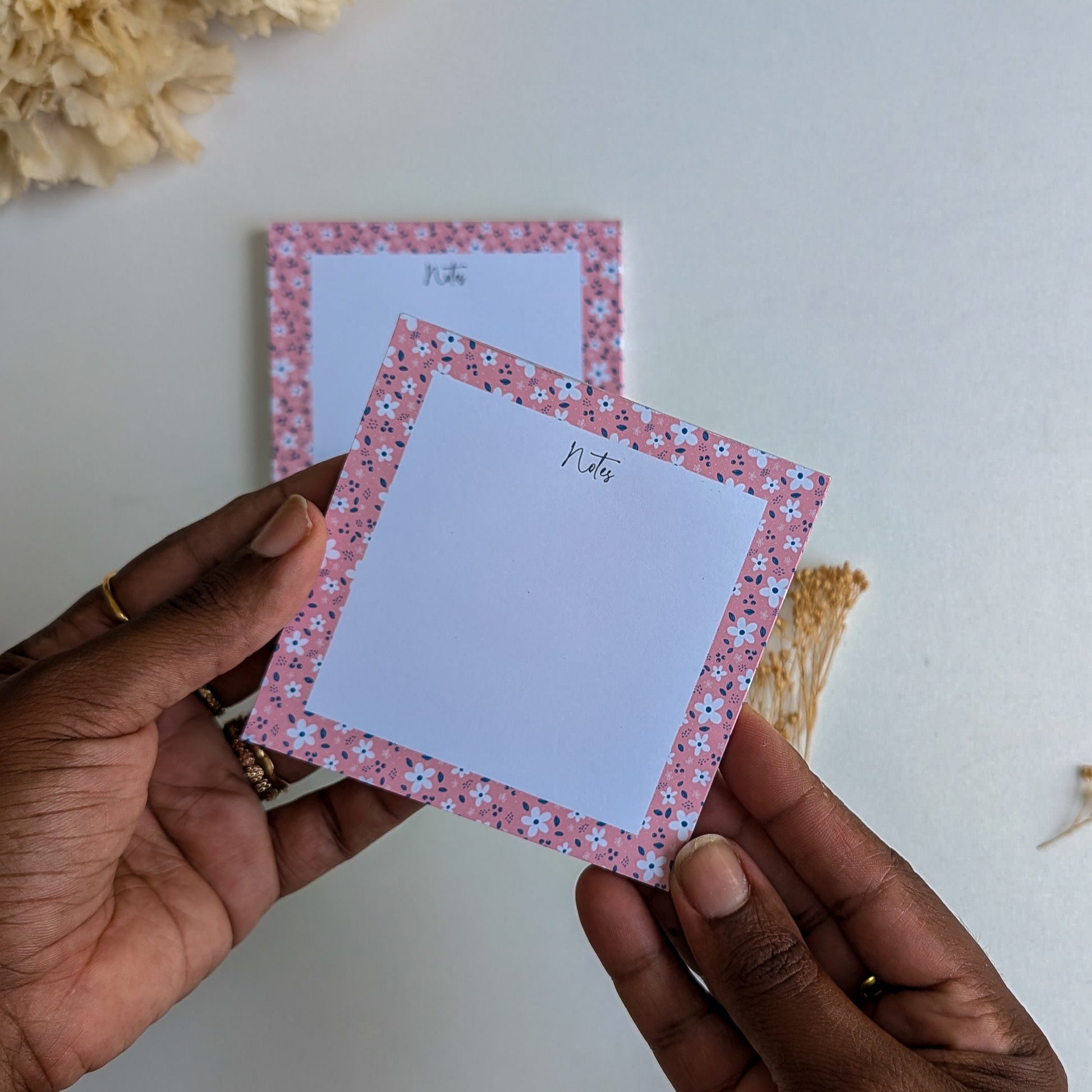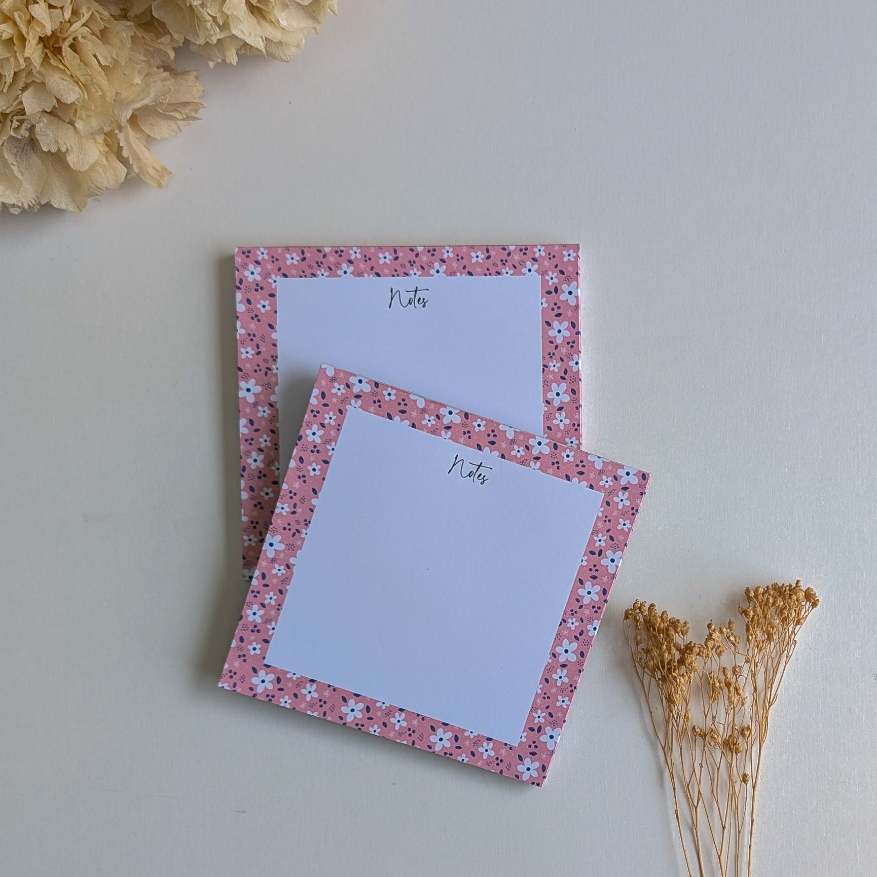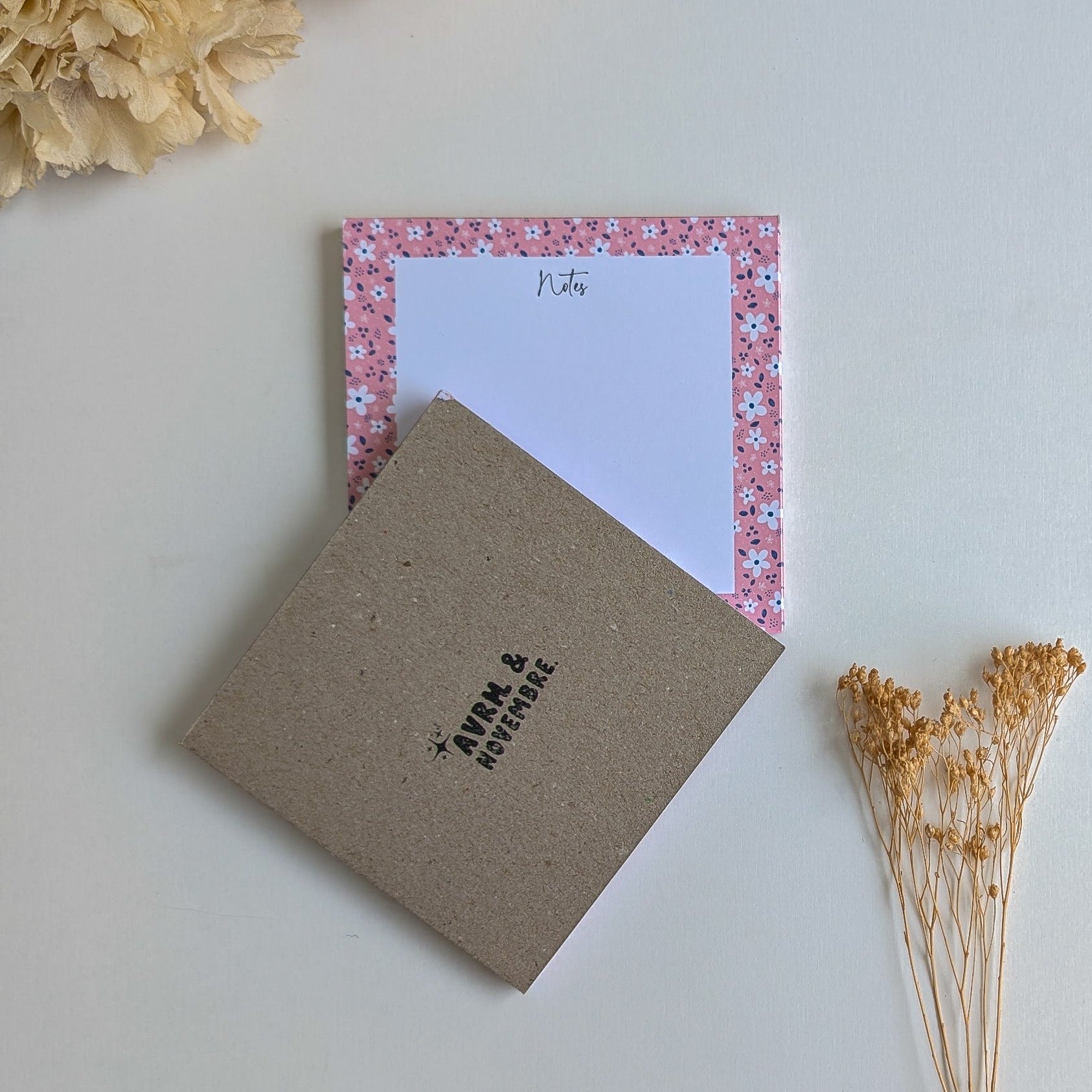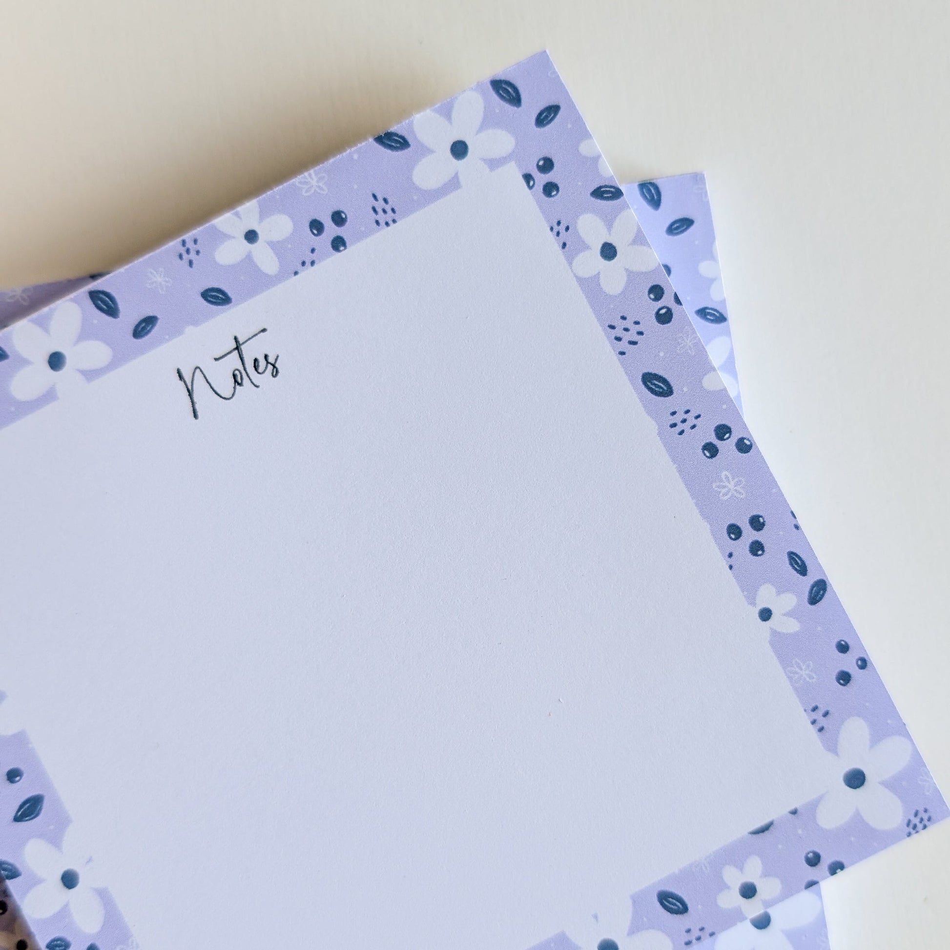 Lot de 2 Bloc-Notes carrés - Petites fleurs blanches - Fond bleu, rose ou violet