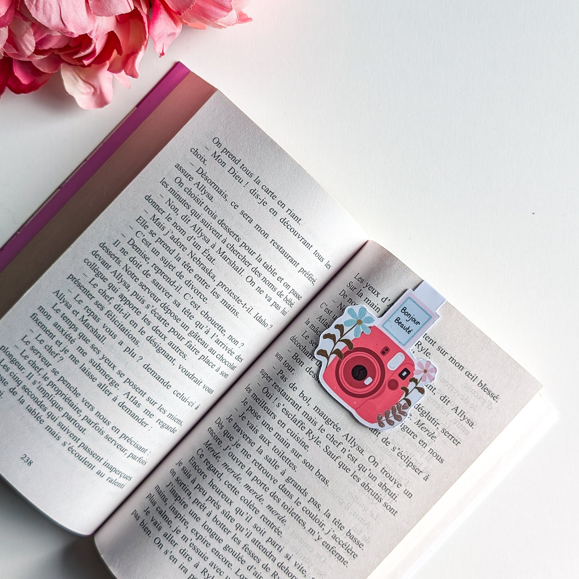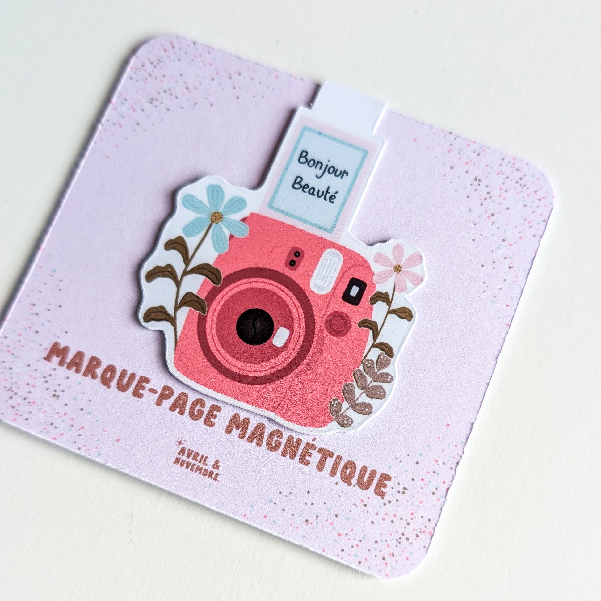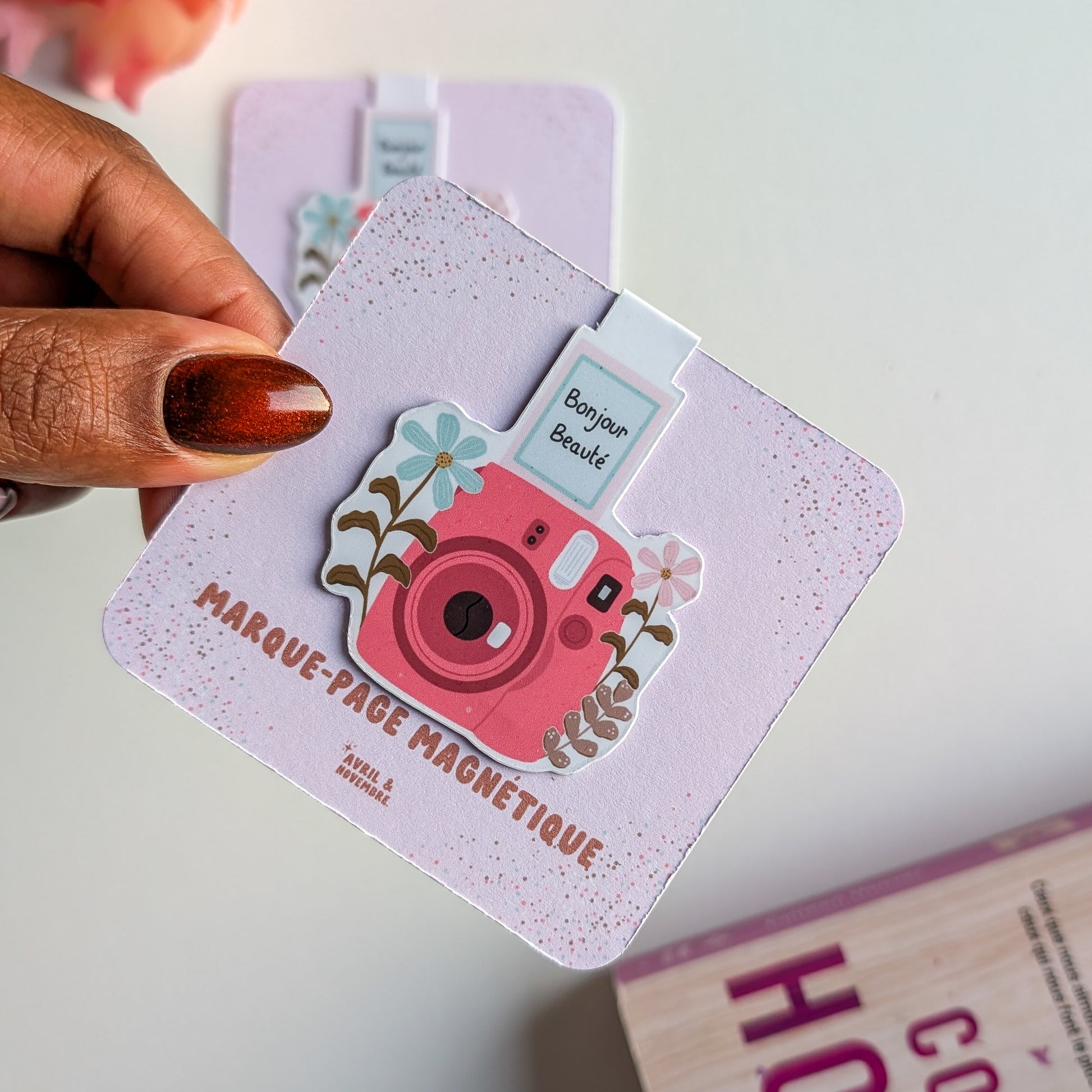 Avec son appareil photo instantané et son petit message “Bonjour beauté”, ce marque-page est une dose de positivité à glisser dans tes livres. Aimanté, il garde toujours la bonne page avec style et originalité.