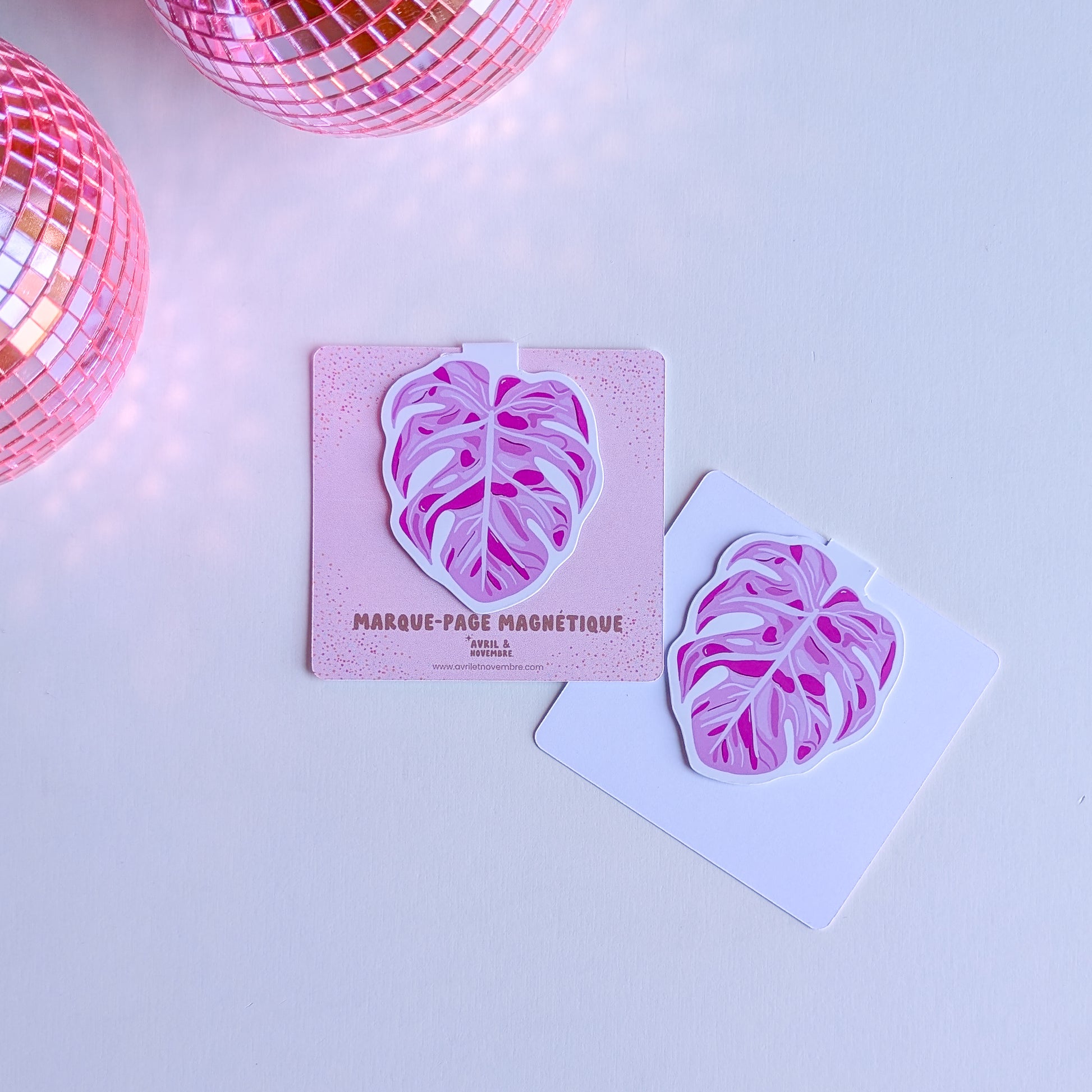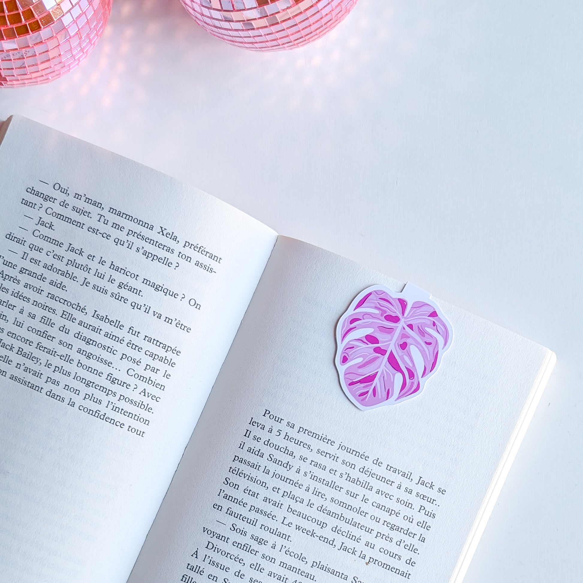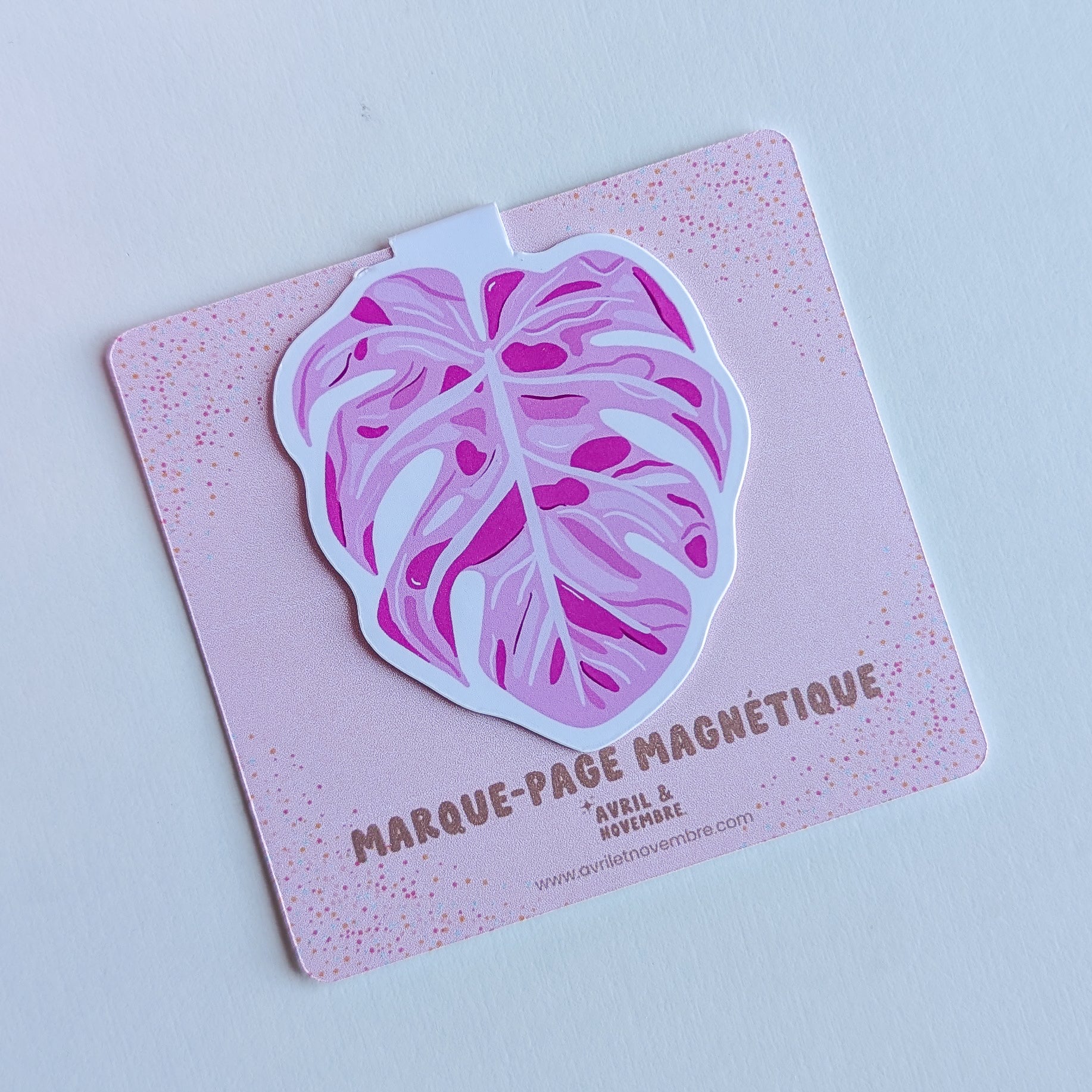 Ce marque-page magnétique illustre une feuille de monstera revisitée en rose. À la fois graphique et tendance, il apporte une touche végétale et moderne à tes lectures.