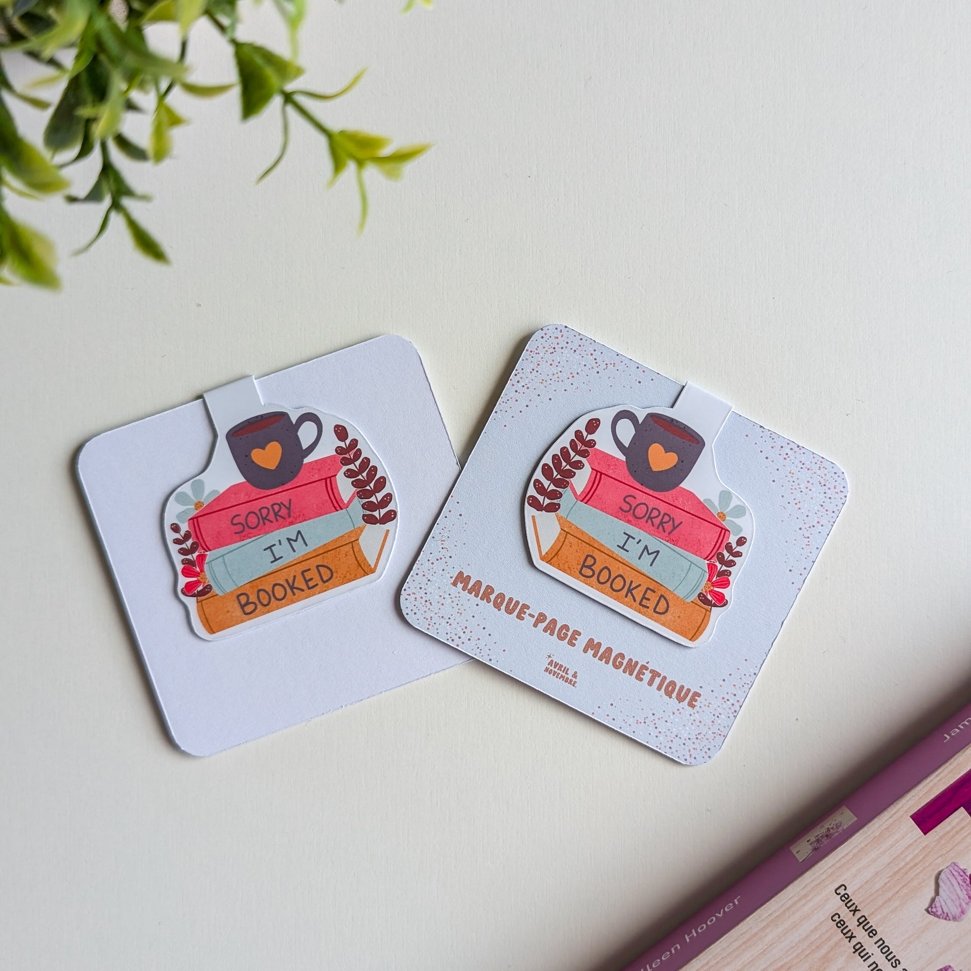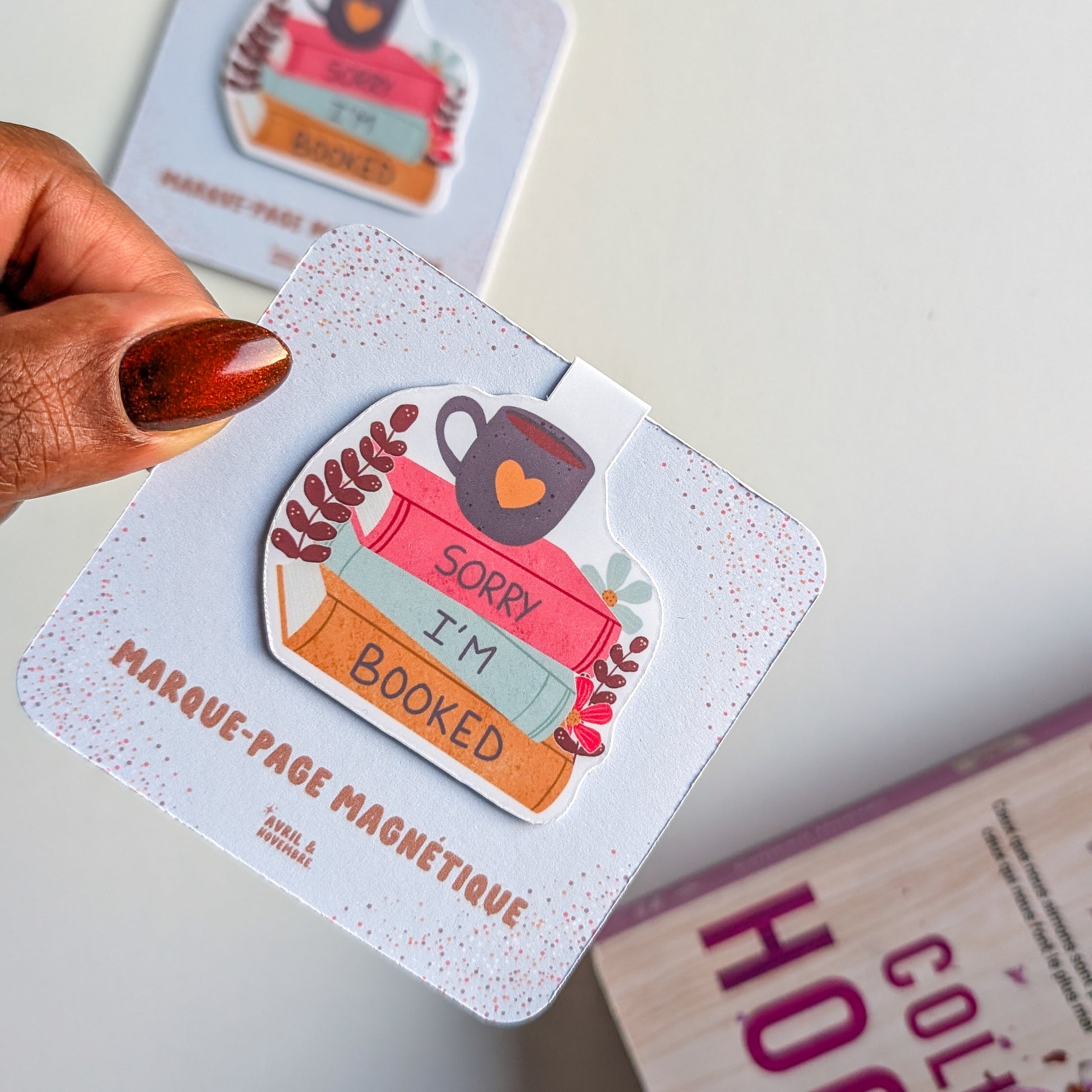 Illustré d’une pile de livres avec le message “Sorry I’m booked”, ce marque-page magnétique est l’accessoire parfait pour tous ceux qui préfèrent un bon roman à une soirée mondaine.
