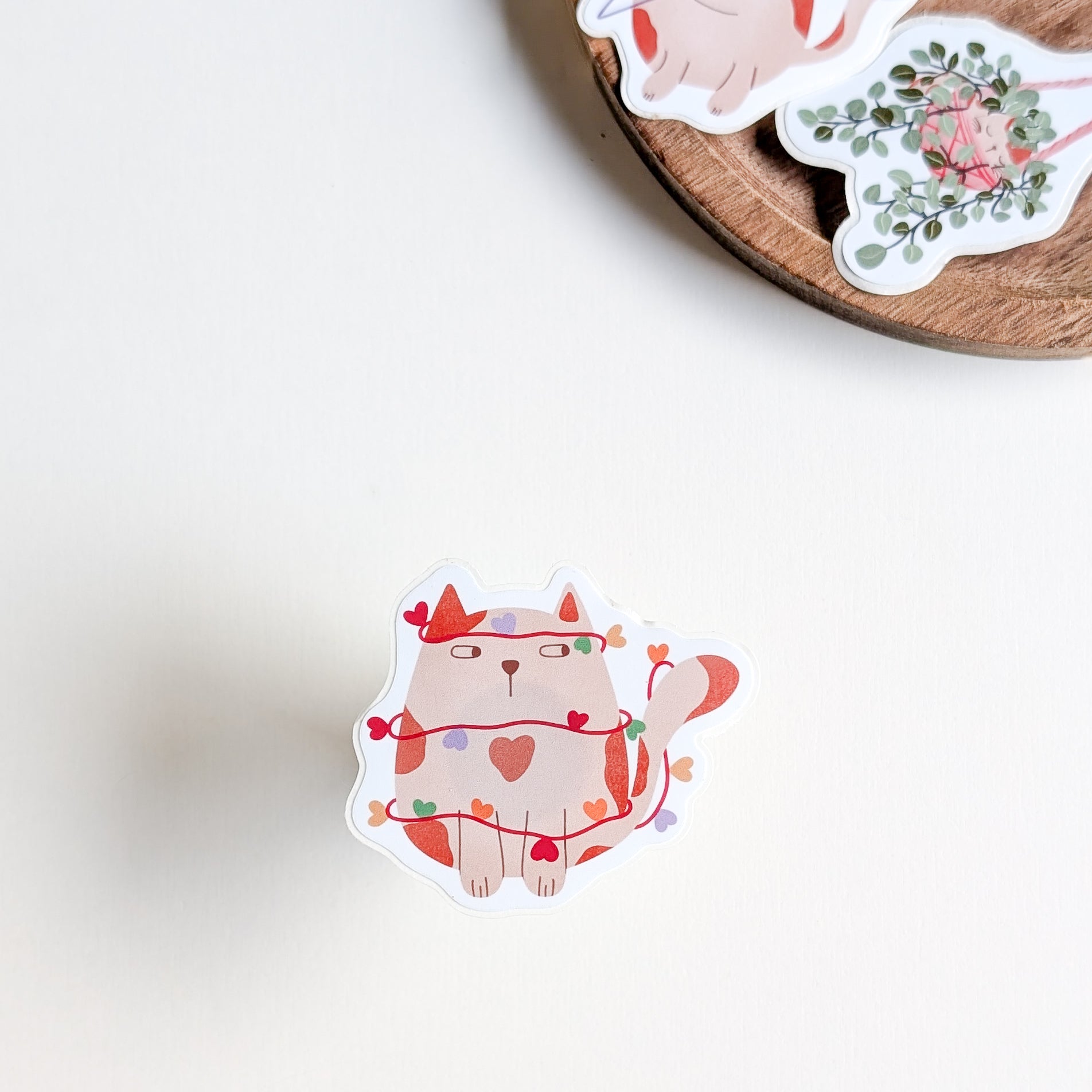 Sticker – Chat dans sa guirlande de cœurs