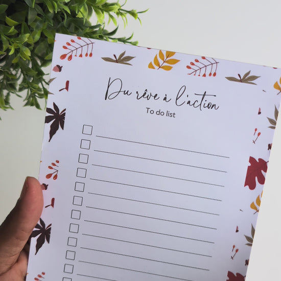 Avec ses feuilles rousses, glands et couleurs chaudes, cette to-do liste A5 capture l’esprit de l’automne. Ses 50 pages détachables permettent d’organiser ses journées avec sérénité.